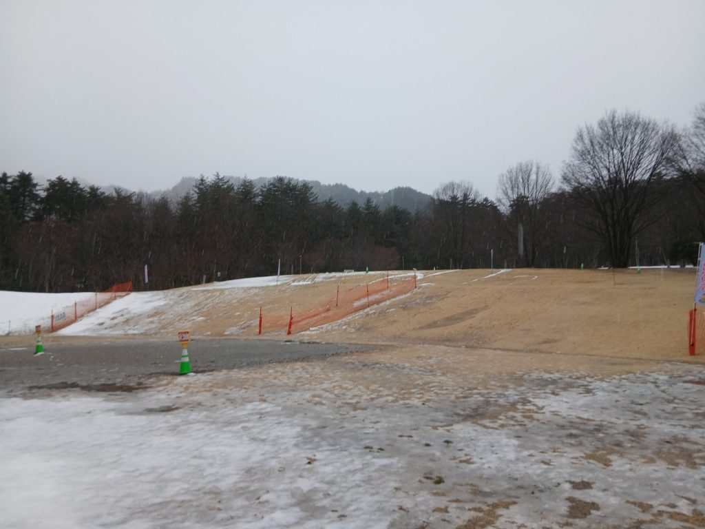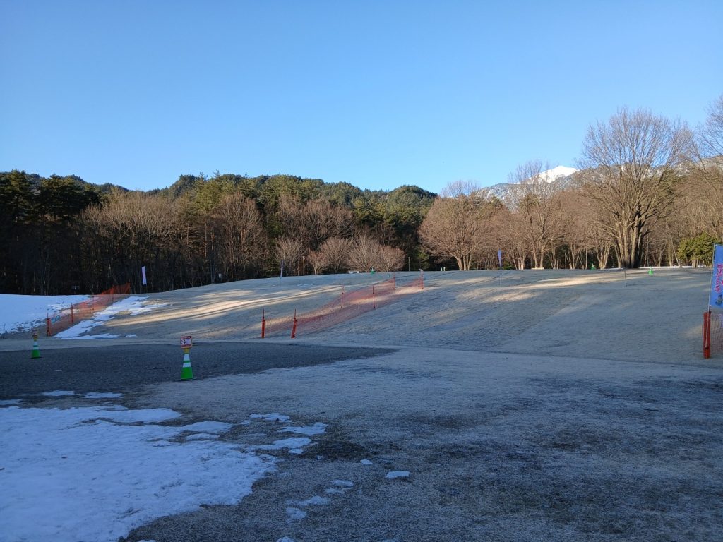「アルプス大草原」と「入口広場」のそりゲレンデは、水が溜まってしまっています。