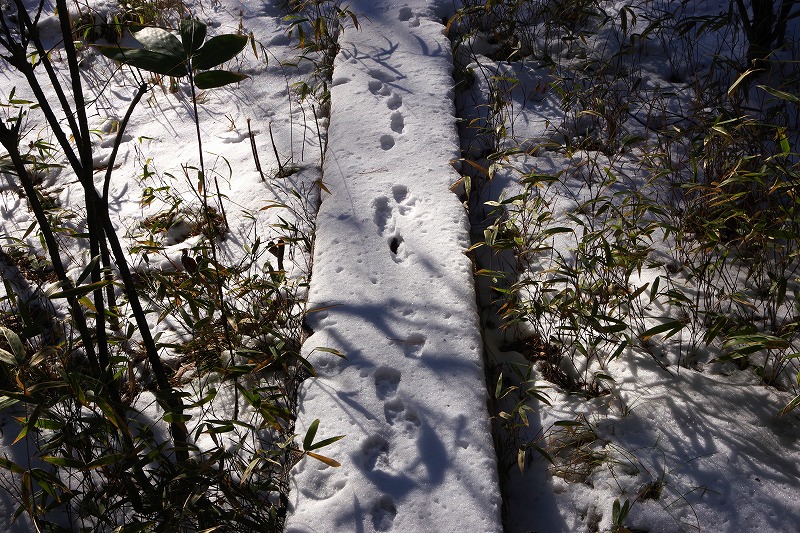 さらにレストラン前の小川に積もった雪の上にも。みんなあづみの学校周辺で見つけたので、同じ個体かもしれません。ホンドテンかハクビシンか?一度は姿を確かめたいですね。