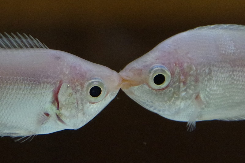 10~15分程見ているとかなりの確率でキスをします。水槽に近づき過ぎるとやらなくなるので、少し離れて見てくださいね。