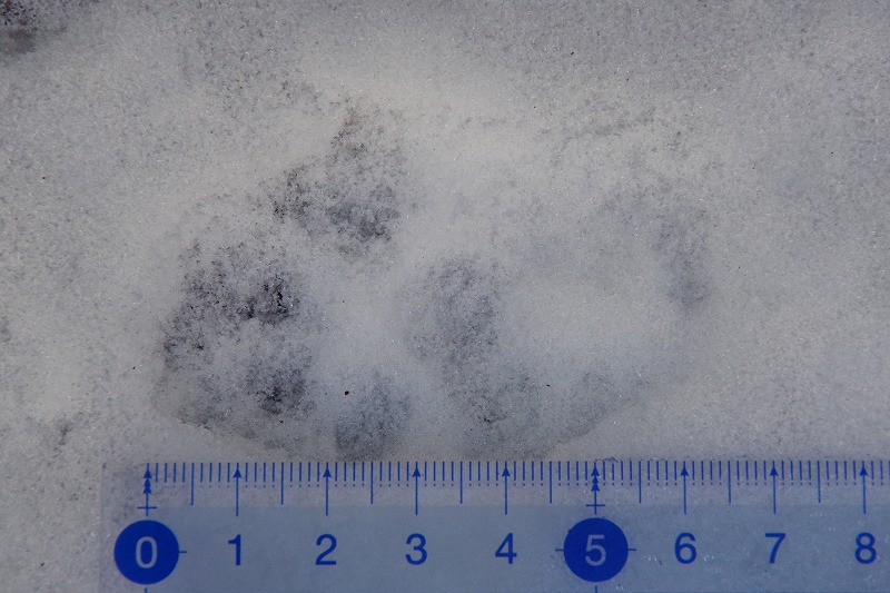 大きさは6~8㎝ほど。このような足跡はずっとホンドテンだと思っていたのですが、テンの足跡はもう少し小さいようなのです。次の候補は体の大きなハクビシン。どちらも公園周辺で目撃されていますよ。