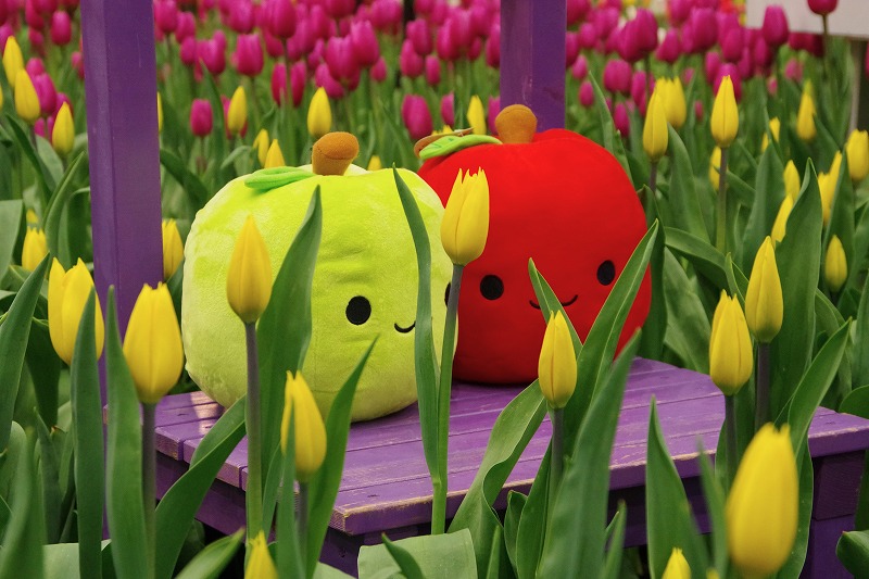 最後に色が出てきたのは黄色のチューリップ。赤と緑の仲良しリンゴたちにも思わず笑顔が溢れます。自然では見られない、リンゴとチューリップの共演です。