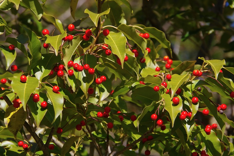 常緑樹のソヨゴの赤い実は、クリスマスツリーのオーナメントの様にも見えますね。ヒヨドリがパクパク食べているのを見たことがありますよ。