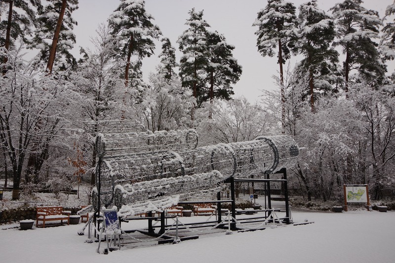 お昼過ぎには雪はだいぶ融けました。休園日なので雪とイルミネーションの共演はお預けです。明日のイルミネーションまでにはさらに少なくなりそうですね。