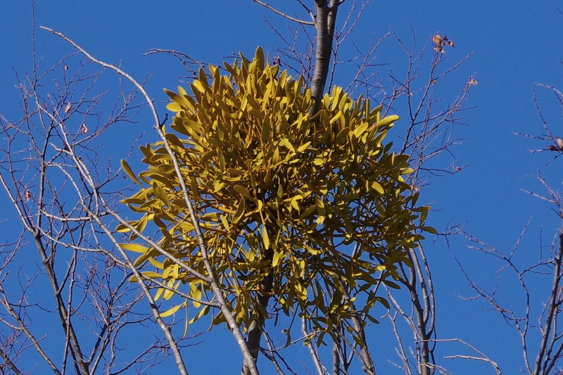 ヤドリギが付いていました。先日紹介したヤドリギは葉が無く黄色い実が生っていましたが、こちらでは実は無かったのですが葉は茂っていましたよ。