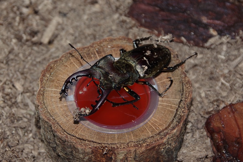 あづみの学校理科教室の昆虫展示コーナーに仲間入りしたのはミヤマクワガタ。10日ほど前に採集しました・・・というより落ちていたのです。まだカブトムシの姿は見ていませんが、そろそろ出現し始める時期になりましたよ。