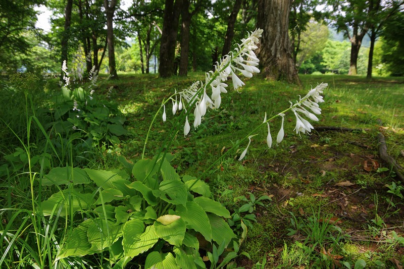 木の周囲には山野草が植えられています。雑草と違い、一度踏みつけると元に戻らなくなるので、中に入らないで観察しましょう。