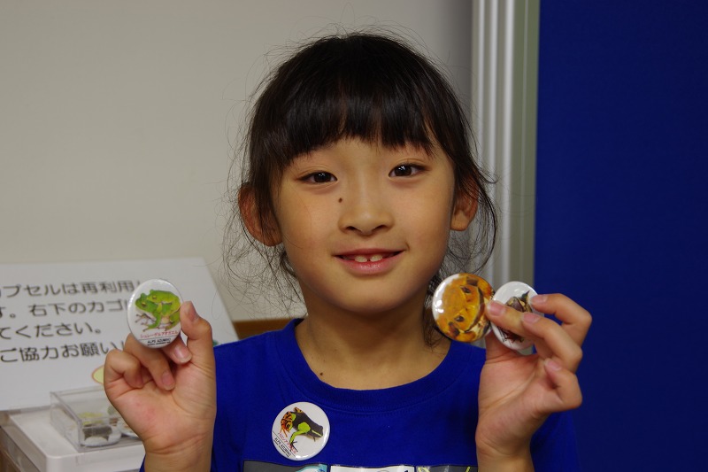 「カエルの缶バッジ」のガチャガチャにもチャレンジ。カエラーのちーたんは何が出ても嬉しいのです。次の特別展示まではもう少し置いておきますよ。