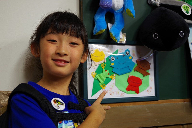 カエルグッズの中にある、可愛いカエルの折り紙。実は以前、ちーたんが作ってくれたものです。アカメアマガエルやツノガエルの特徴が良く出ていますね。