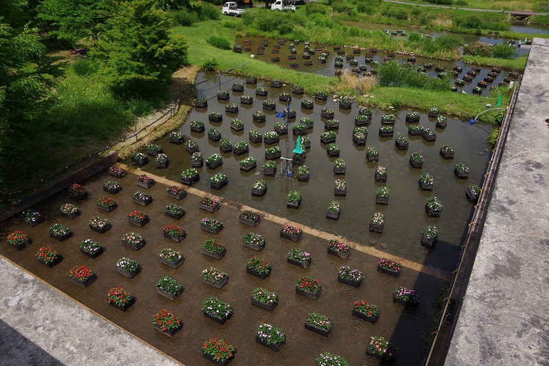 これからどんどん成長して、コンテナを覆うくらい大きくなります。夏に向けて、池一面がサンパチェンスで埋め尽くされる風景が楽しみですね。