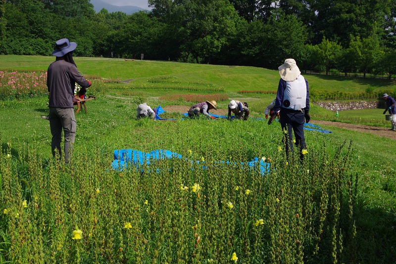 見晴らしの丘もほとんど色が無くなりました。暑い中、しばらくはキンギョソウの撤去が続きます。次は何を植えるのか楽しみですね。