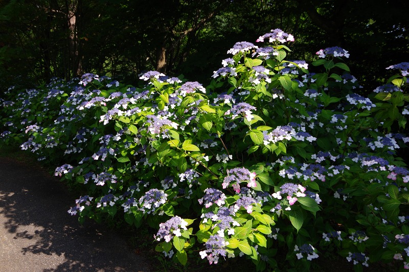 変わってこちらはガクアジサイ。見頃のピークを迎えています。アジサイは展望テラスより西側に点在しています。捜し歩いてくださいね。