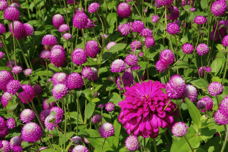 以前植えていたジニア(百日草)が混じっていました。千日と百日のコラボレーション。花色も同じなのが申し合わせたようで素敵です。