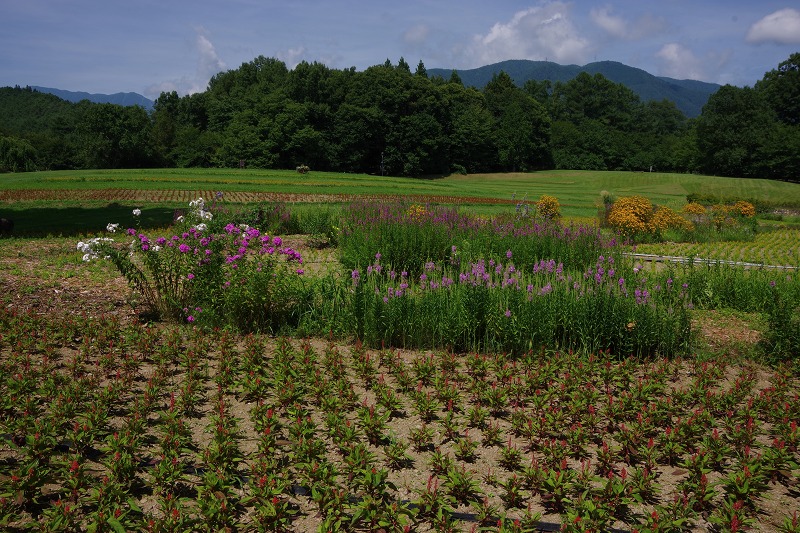 こちらは穂高口前の見晴らしの丘。小さかったケイトウが少し成長していました。ゆっくり大きくなって、こちらも秋まで楽しませてくれそうですね。