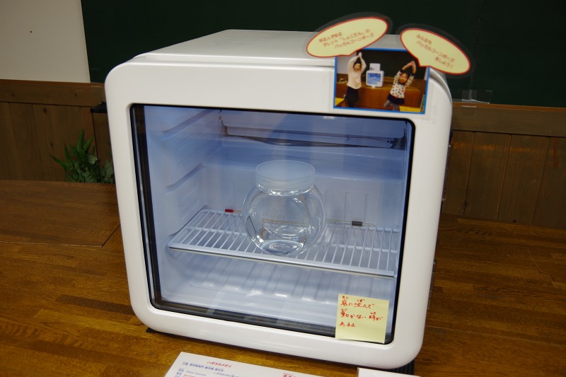 こちらはクリオネを展示している冷蔵庫。置かれている机も次の展示で使用するので、クリオネ展示も明日で終了となります。