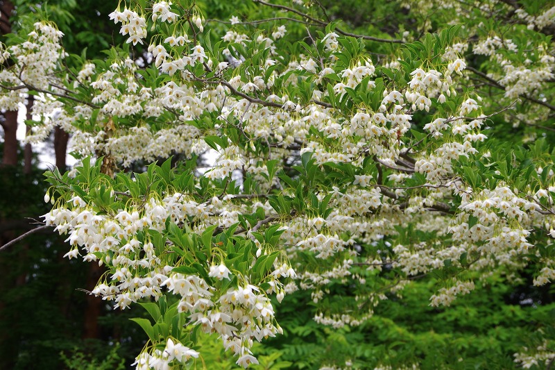 5月下旬になって咲き始めたのはエゴノキの花。釣鐘やランプの傘のような形の可愛いいお花です。花が落ちる前に見てくださいね。