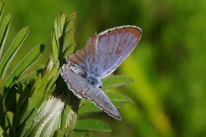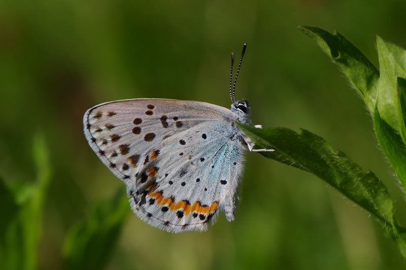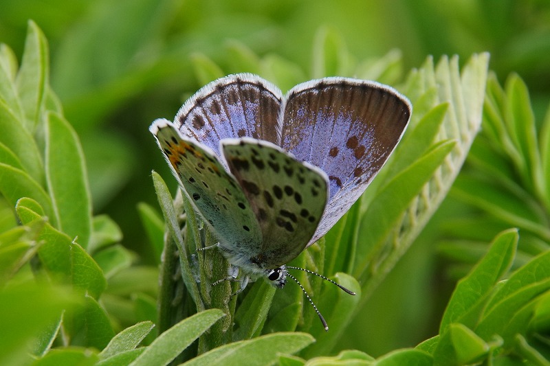 オオルリシジミは長野県の一部と熊本県と大分県の一部にしか生息が確認されていない絶滅危惧種の蝶です。安曇野市の天然記念物にも指定されていて、捕獲することはできません。そっと見守ってあげましょう。