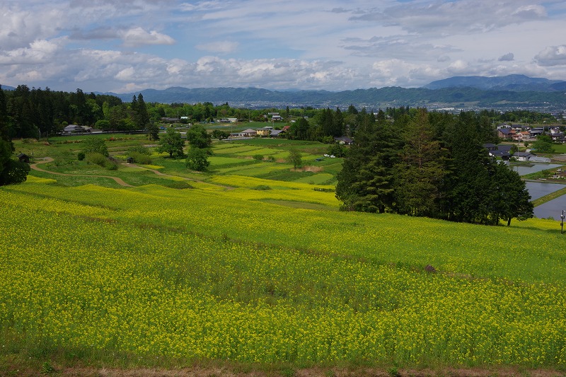 鮮やかな黄色はやはり青空が良く似合います。棚田エリアの展望広場からの撮影です。黄色い絨毯はまだ健在ですよ。今週末まで維持してくれると良いですね。