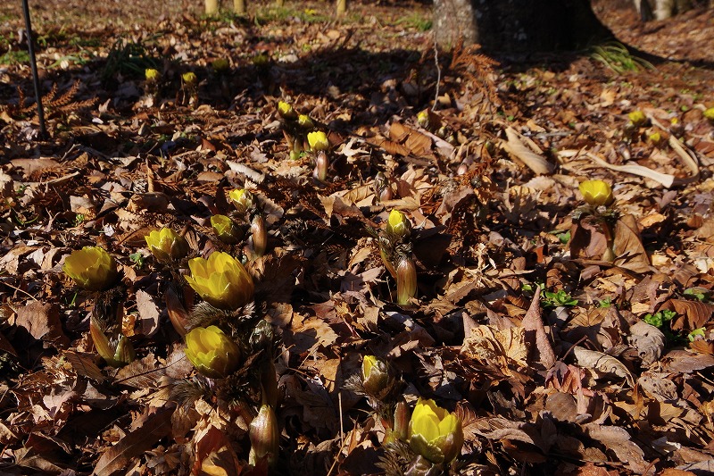 気温が上がった午後に再び見に行くと、70株ほどの花が開いていました。一足早い春の陽気を花全体で受け止めているようですね。