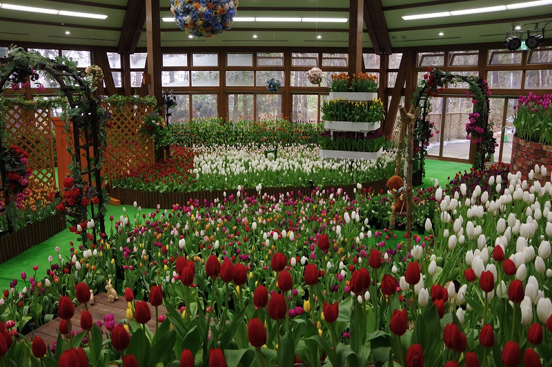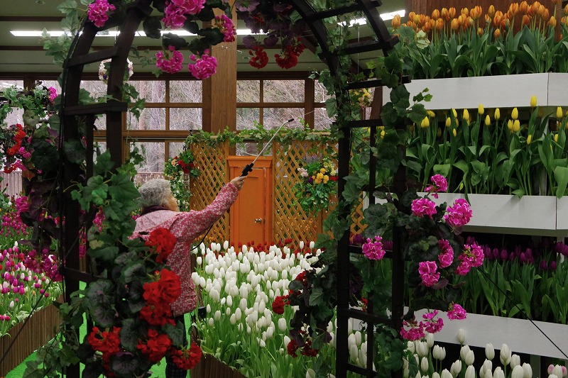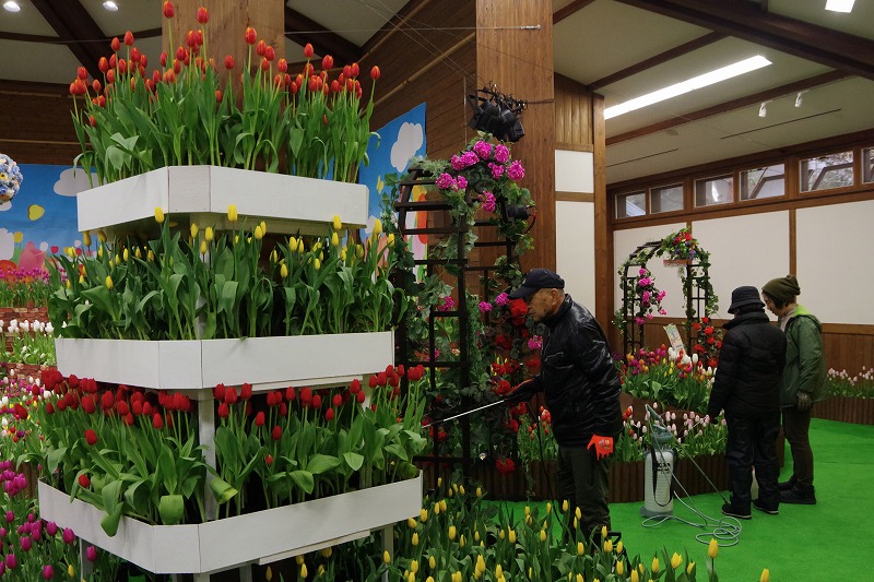 今日は休園日です。あづみの学校多目的ホールで開催中の『インドアガーデン アイスチューリップの庭』も後半戦になりました。