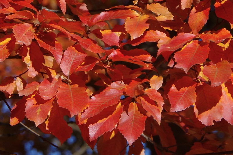 オオシマザクラは、ほとんど葉を落としていました。桜の紅葉は色とりどりで鮮やかです。葉の表裏の色の違いの他にも、立体的な葉は日の当たり具合で1枚の中にグラデーションが出来るのです。