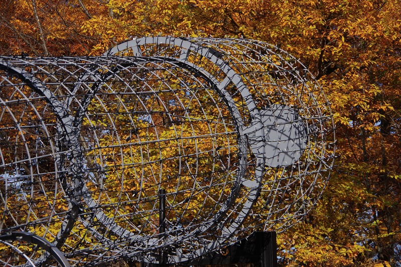 だんだん池と野原の間。イロハモミジやカラマツが綺麗に色づいています。