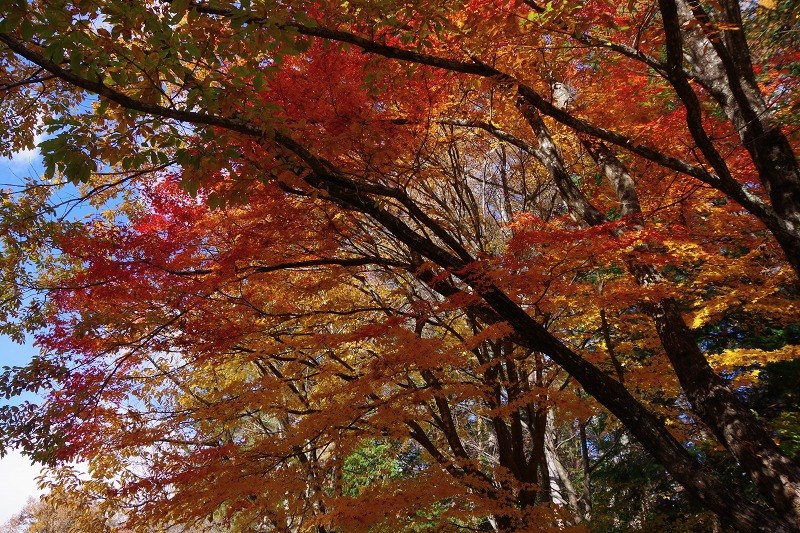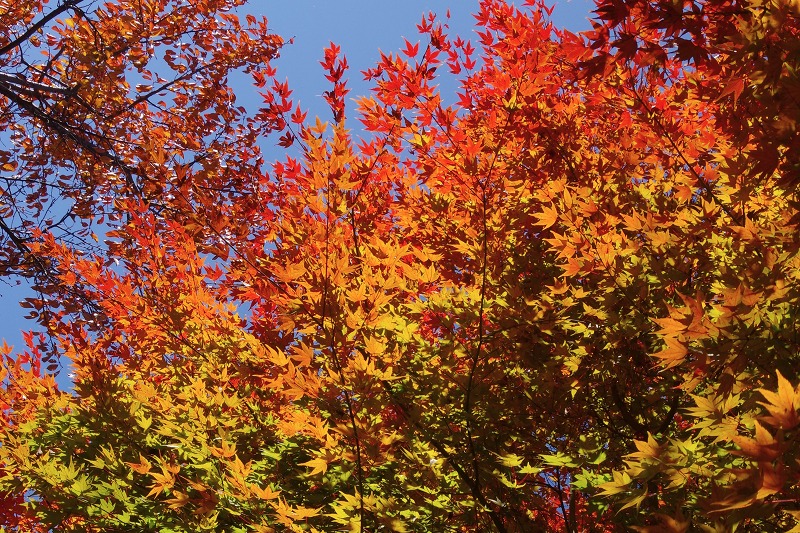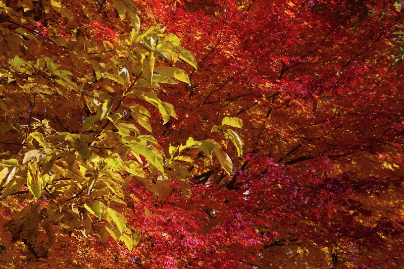 種類の違う木の紅葉が重なり合うのは素敵ですね。平日の日中は散策の時間が短いですが、イルミネーションが始まるまでは紅葉狩りを楽しんでくださいね。
