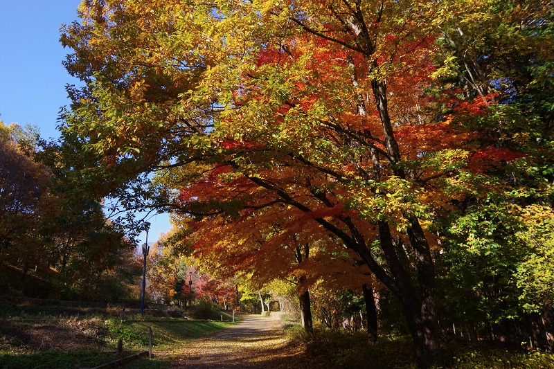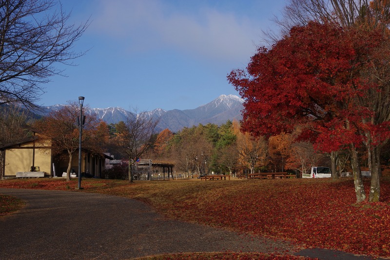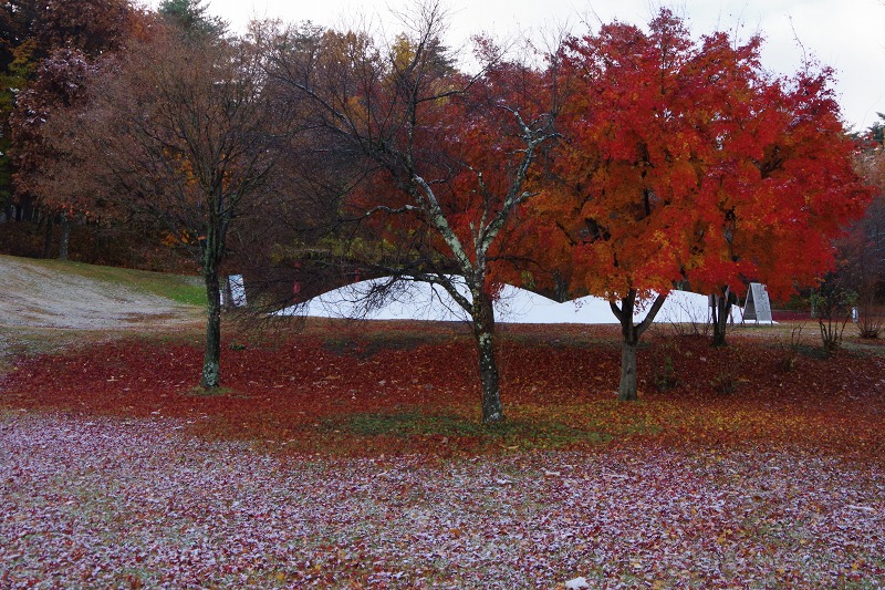 公園の紅葉も終盤を迎えています。色鮮やかなモミジは残り僅かです。数日前の雪や霜の影響で、あっという間に葉を落としたようです。