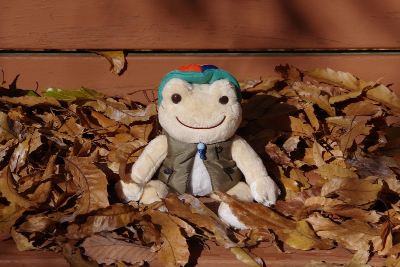 クリの落ち葉に埋もれて、のんびり日向ぼっこ。今日は1日風が吹くお天気でした。落ち葉の感触を楽しめるのも、この時期ならではです。