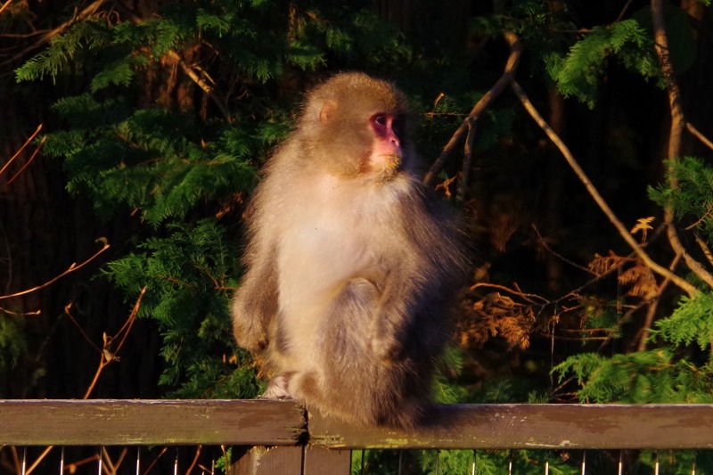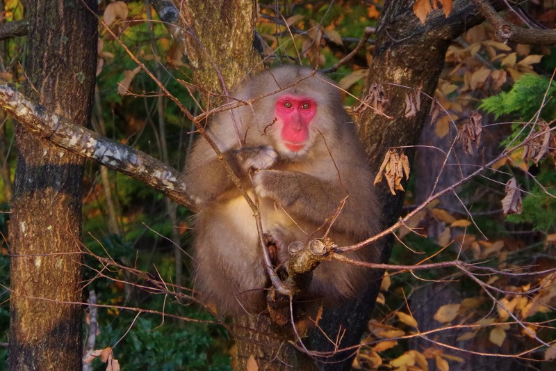 朝早くの第2駐車場。この所毎日のようにニホンザルの群れが居座っています。赤茶色に染まったコナラの木の上では、お猿さんが遠くを見つめていました。