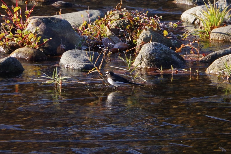 氷の上を歩いていたのはセグロセキレイです。トコトコ歩く様子を見ていたら、方向転換をした拍子にツルっと滑っていました。まだ慣れないようですね。