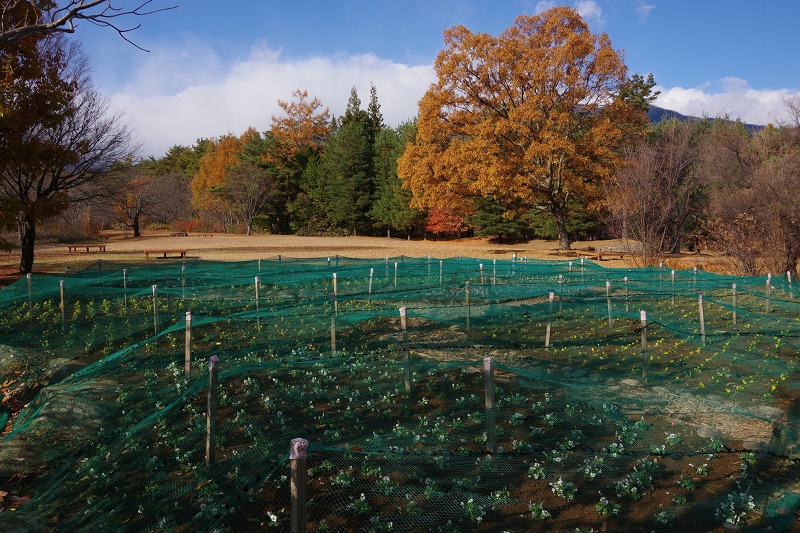 野原にかけての花壇では、先に植えられていたビオラの間にチューリップの球根を植えていました。来春にはビオラとチューリップの共演が見られそうですね。