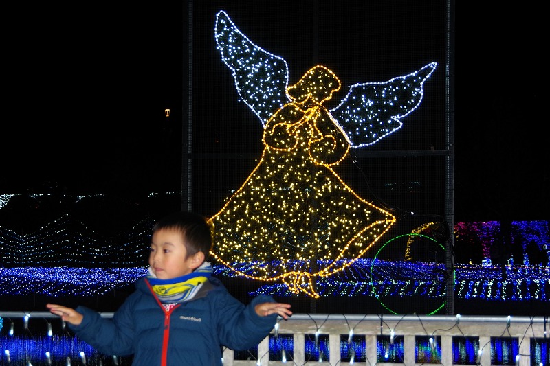 そして、お馴染みの〝おたまくん〟も遊びに来てくれました。フルートの演奏を聴いた後はイルミネーション見学です。おたまくんも天使の羽ばたき?