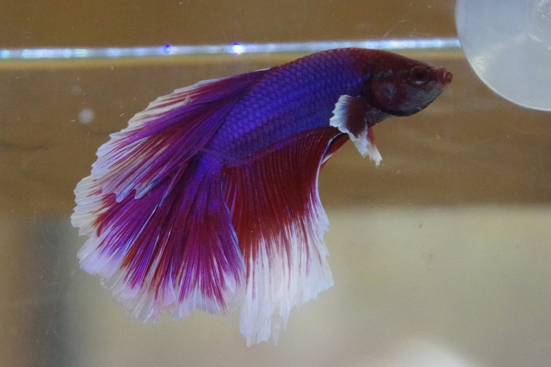 ベタ・ハーフムーンは、最初にいた青い色の個体のヒレがボロボロになったので、新しくこちらの個体に変わりました。尾びれをいっぱいに広げて、半月状になる様子を観察してくださいね。