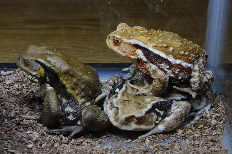 一方こちらはアズマヒキガエル。ヒキガエルも毒を分泌することで知られていますが、よほどのことが無いと毒は出さないようですよ。