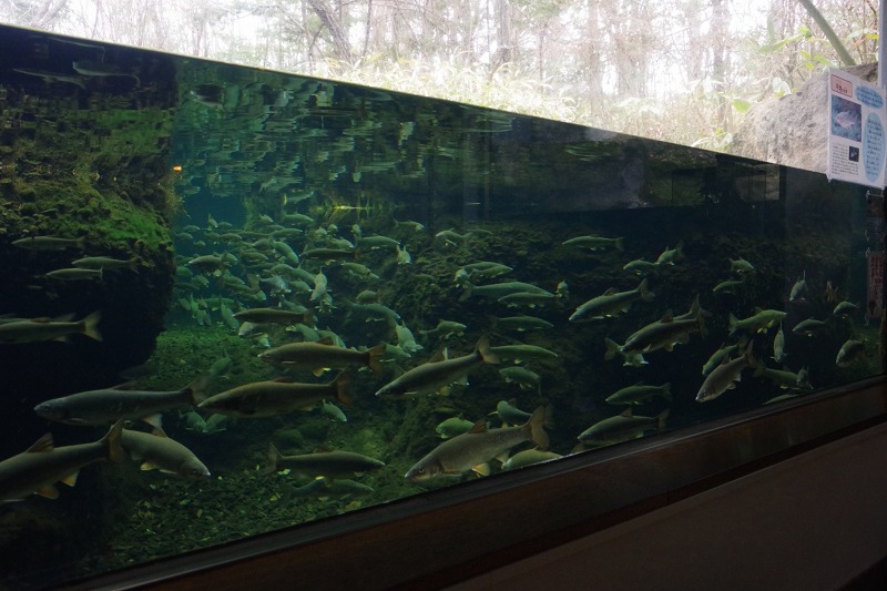 あづみの学校の理科洋室。昨日の休園日に撮影したウグイの水槽です。ウグイの群れは見る時によって、上の方にいたり下に沈んでいたり様々です。