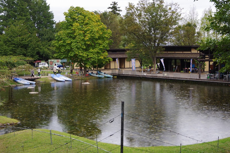 水辺の休憩所前の池では「あづみのカヌー体験」も。明日の日曜日も無料入園日です。10:00~16:30まで、今日と同じイベントが開催されます。お天気が回復することを祈りましょう。皆さん、ふるって参加してくださいね。
