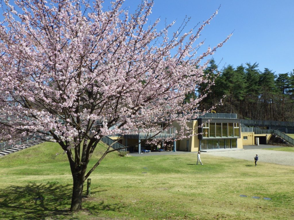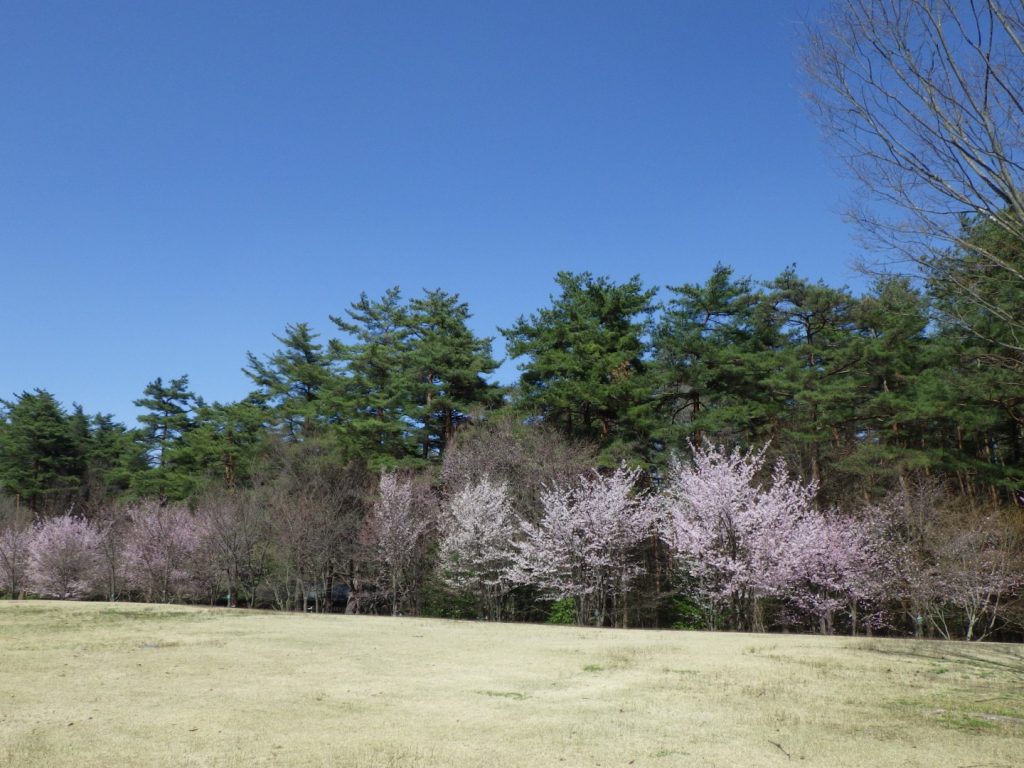 園内に数本だけあるソメイヨシノは明日には満開になりそう。アルプス大草原から彩の森を抜けたところの様子です。