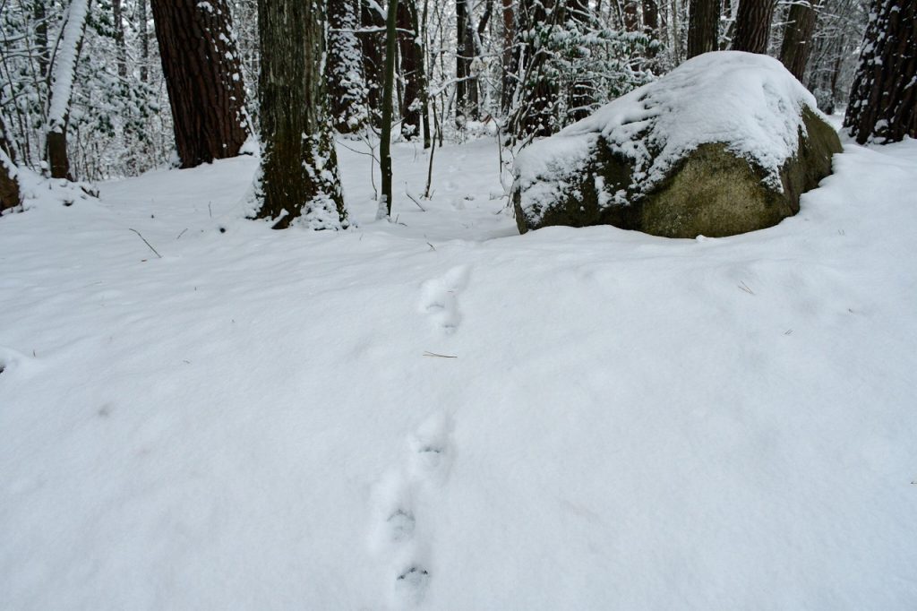 園路や林内では、動物たちの足跡に出会えることも。