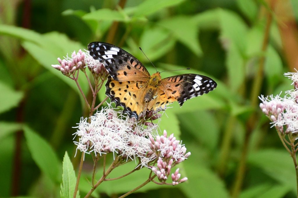 園内に飛んでくる蝶はアサギマダラのほかに、ツマグロヒョウモンも!