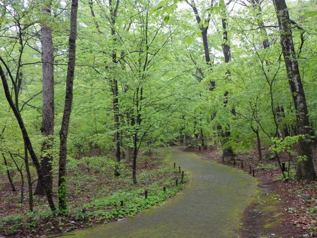 晴れた日は木漏れ日、雨の日はしずくのきらめき、森の散策はリラックス効果満点!