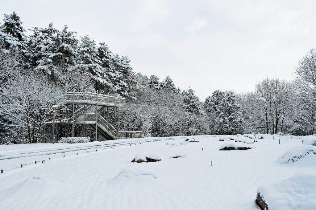 「森の体験舎」まで続く「空中回廊」、および主要施設は除雪済みです。通常どおりご利用いただけます。
