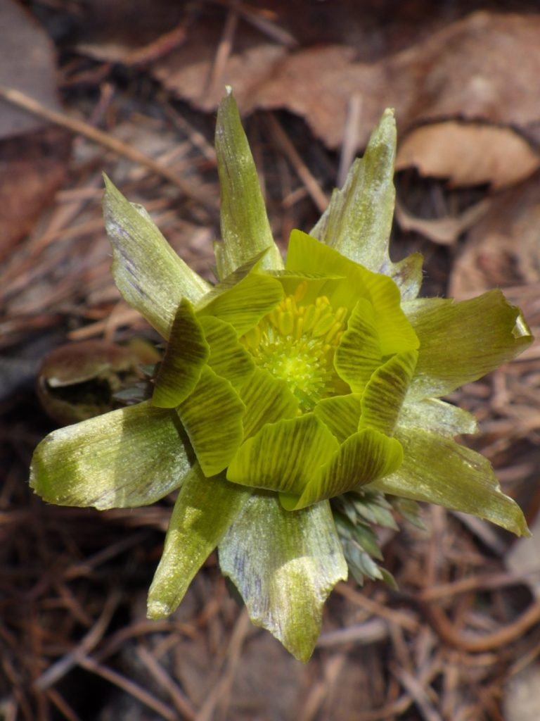 昨春この花の写真を撮ったのは4月に入ってからでした。今年はなんと一か月も早く、落ち葉をかき分けるように花茎が伸びています。一輪ごとの構造がとても美しい。見惚れます。雌花、雄花、両性花が一緒に咲く種類なので、しっかり開いてきたら見分けてみましょう。