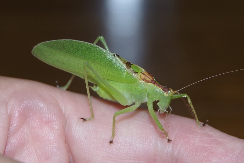 すぐ近くの壁を歩いていたのはウマオイ。「スィーッ 、チョン」の鳴き声で知られています。結構獰猛で、ツユムシなどを一緒に入れると食べてしまいます。