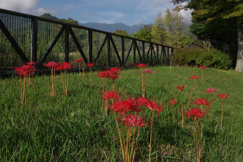 そしてこちらは段々原っぱの水路沿いに咲くヒガンバナ。元々原っぱに咲いていたものを、花壇を広げる際に球根を掘り起こしてこの場所に移植したのです。