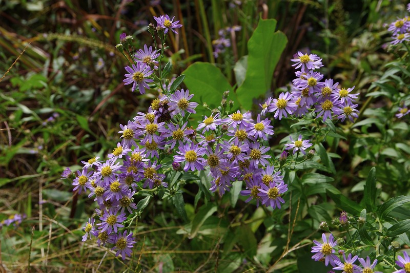 こちらはノコンギク。花色は白いものから薄紫色、青紫色など様々あるようです。少しずつ増えていたのですが、今年は数が減ったような気がしますよ。