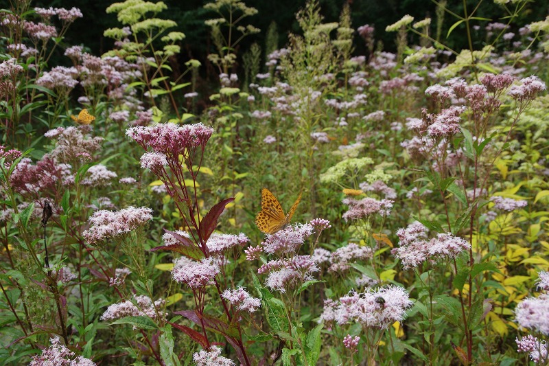 アサギマダラやタテハチョウの仲間が集まっているフジバカマも、まだ見頃です。除草作業で綺麗になった花畑で、お花や虫たちを観察しましょう。