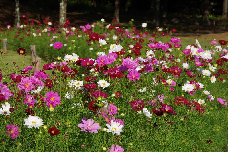 昨日朝の田園文化ゾーン・段々原っぱ。コスモスはまだ多くが未開花の状態です。10月4(土)・5(日)の無料入園日に向けて、もう少し咲いてほしい所です。