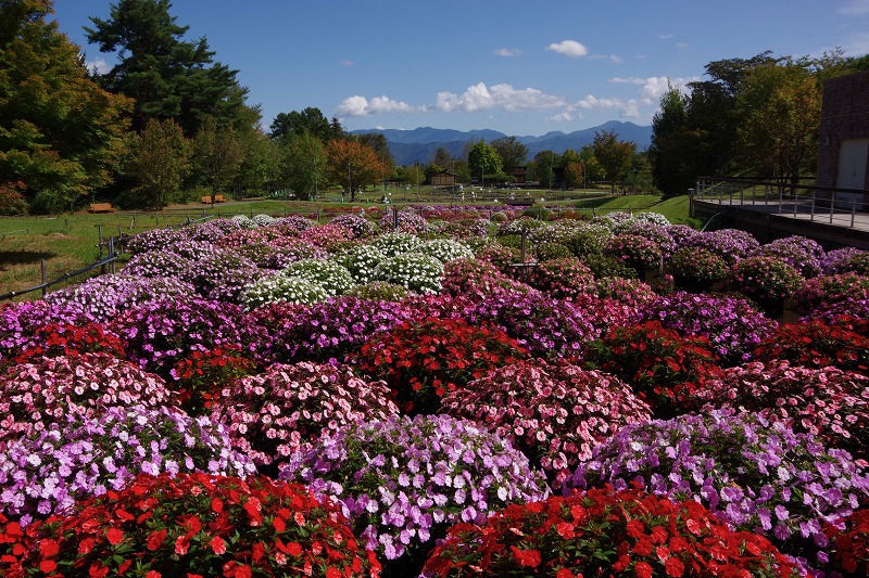 ガイドセンター前広場のサンパチェンスは、今週末の3連休までご覧いただけます。その後は撤去され、こちらにもイルミネーションが設置される予定ですよ。