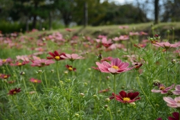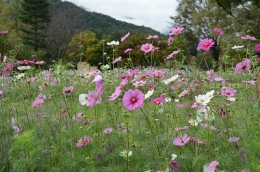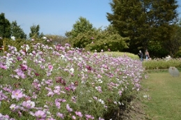 野の休憩所前や段々原っぱ上段のコスモスは見ごろを迎えております。
