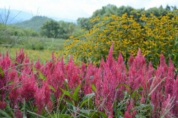穂高口に鶏のトサカのような花の形が特徴のケイトウの花畑が登場!色とりどりのケイトウによる華やかな景色を楽しめます。 ◇場 所:田園文化ゾーン 穂高口花壇 ◇植栽規模:3万本 2,000m2 ◇見頃時期:8月下旬~10月中旬